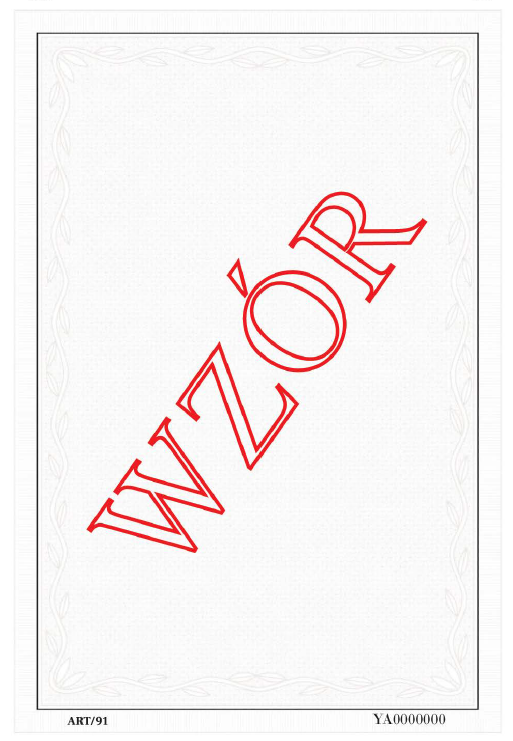 ART/91 Poddruk dla duplikatu dyplomu ukończenia szkoły artystycznej - szary A3 czterostronicowy numerowany, z zabezpieczeniem
