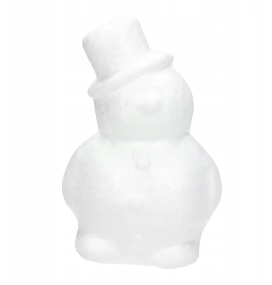 Bałwanka styropianowego można przyozdobić tasiemkami, koralikami, cekinami, brokatem, poobklejać lub po prostu pomalować.