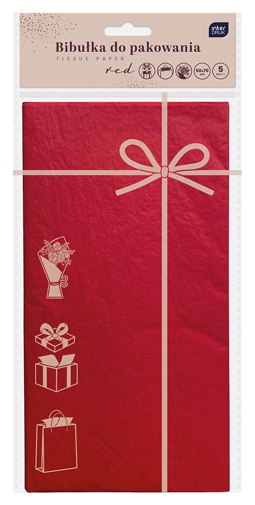 Bibułka do pakowania Interdruk 50 x 70 cm 5 sztuk - czerwona