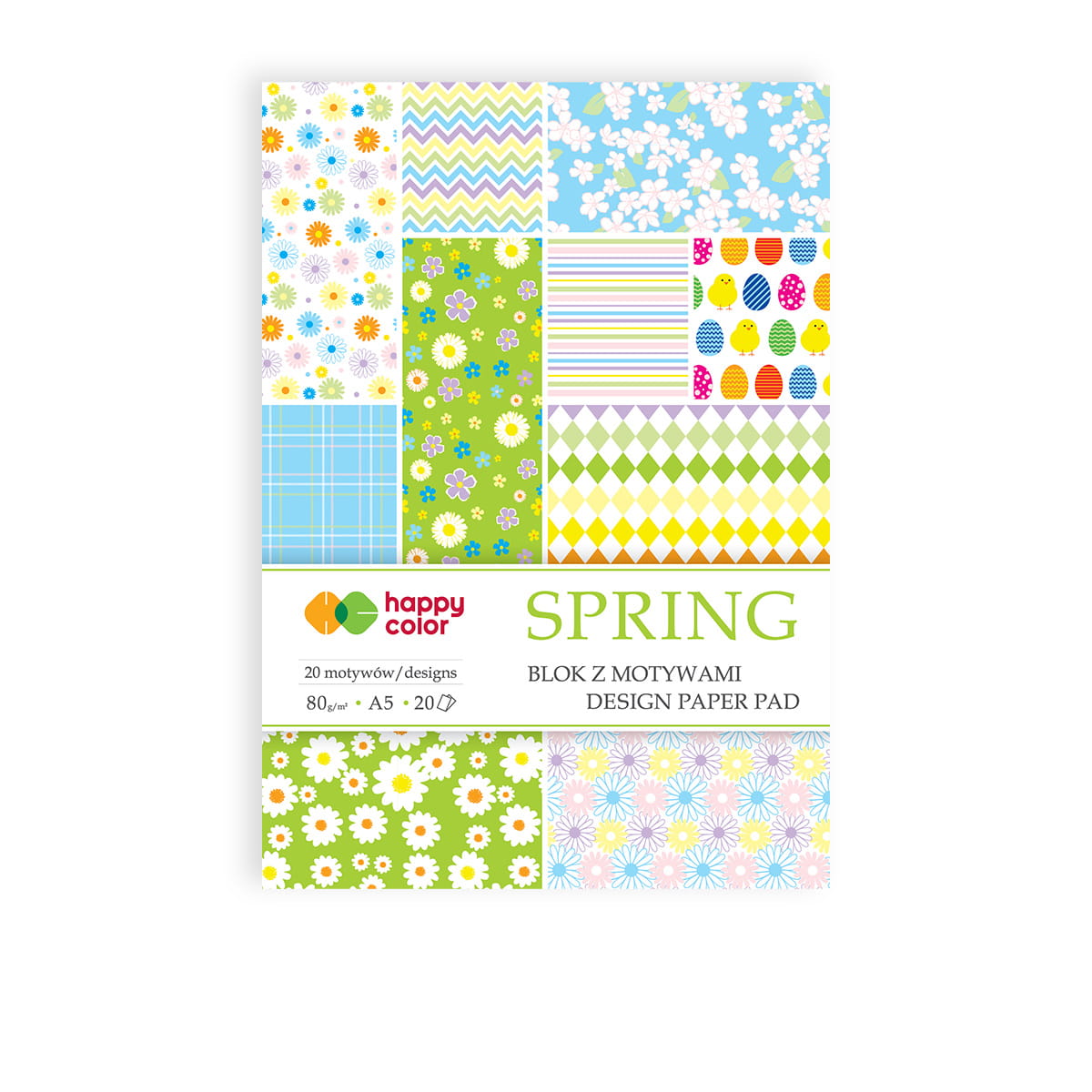 Blok kreatywny z motywami Happy Color A5 80 g 20 arkuszy 20 motywów - różne wzory - wiosna