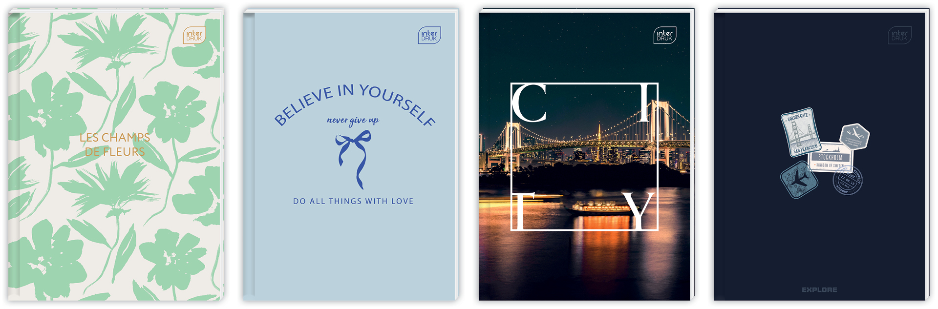 - Zeszyty w intensywnych kolorystycznie grafikach, zaprojektowane zgodnie z aktualnymi trendami w designie i modzie.