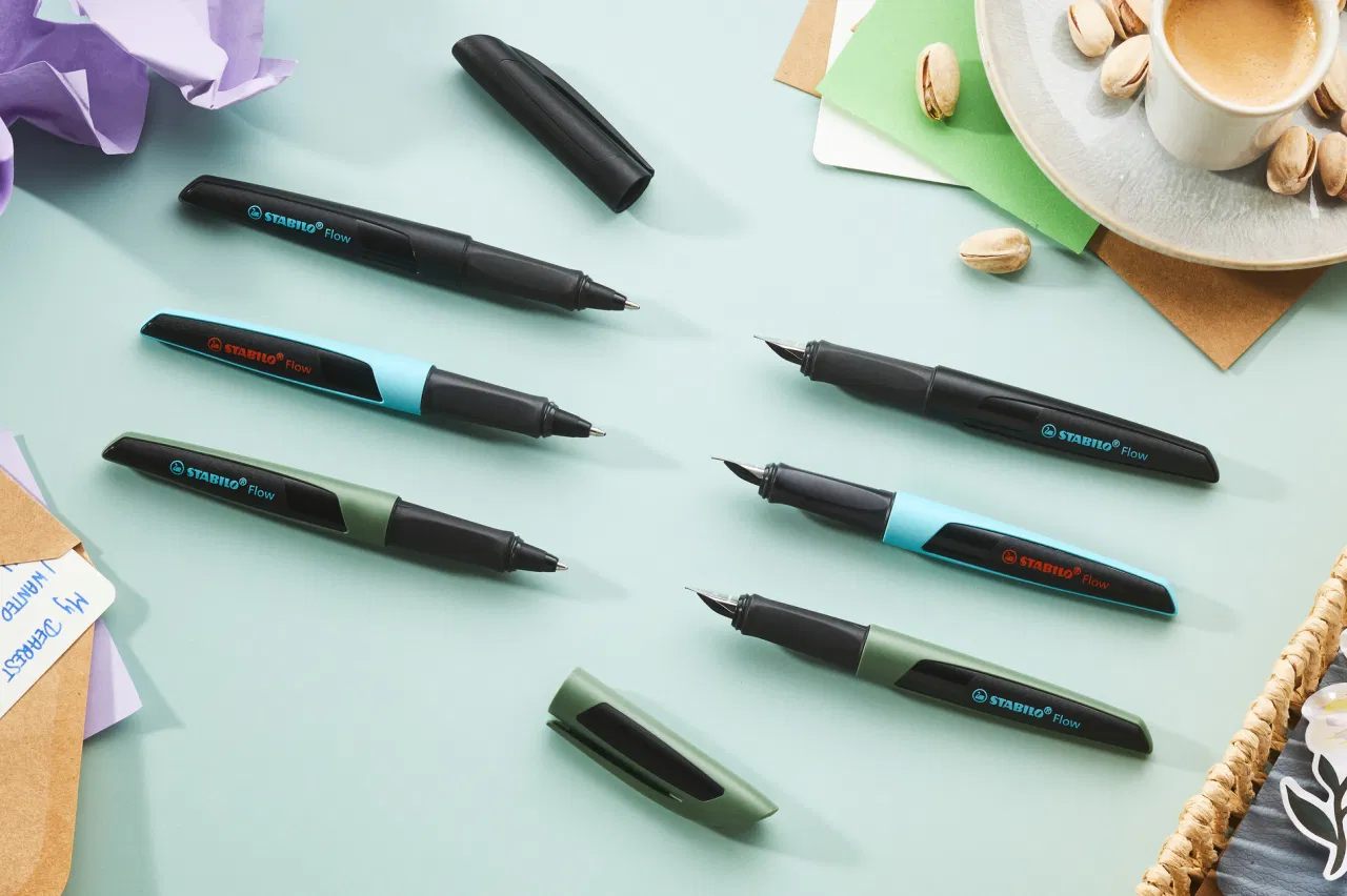 Długopis STABILO Flow łączy modny design ze sprawdzoną jakością. Nowoczesne zestawienia kolorów zapewniają świetną zabawę w szkole, na uniwersytecie i w biurze. Ergonomiczna strefa uchwytu gwarantuje wygodę użytkowania i pewny chwyt. Wkład w długopisie zapewnia wyjątkowo miękkie i przyjemne pisanie – nawet osobom często piszącym. Po opróżnieniu można go wielokrotnie uzupełniać wkładami STABILO Ballpoint Refills.