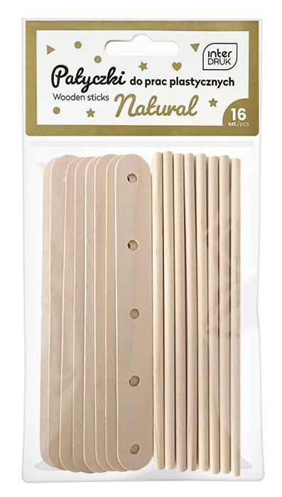 Drewniane patyczki / szpatułki kreatywne Interdruk 150x7 i 150x4 mm - 16 sztuk