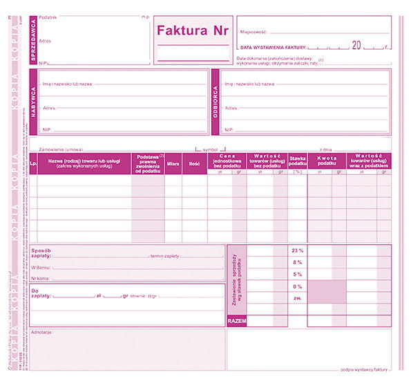 Zastosowanie: faktury i inne dokumenty wynikające z przepisów o podatku od towarów i usług