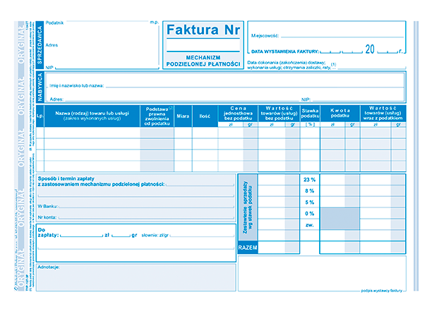 Druk 127-3P FAKTURA Mechanizm podzielonej płatności A5