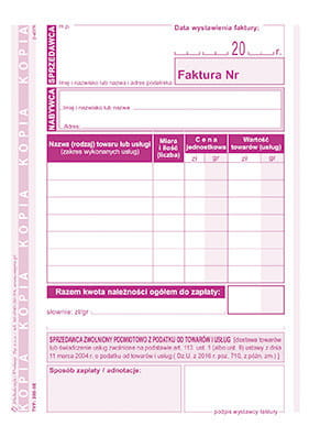 Zastosowanie: faktury i inne dokumenty wynikające z przepisów o podatku od towarów i usług