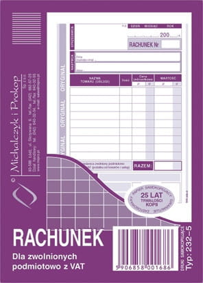 Rachunek dla zwolnionych podmiotowo z VAT 232-5
