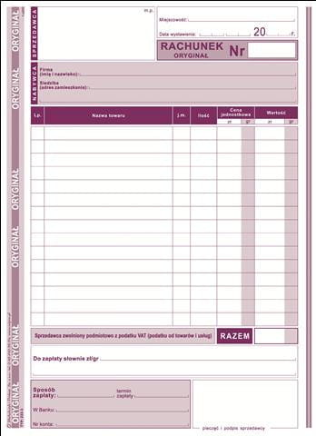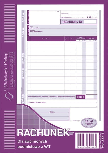 Rachunek dla zwolnionych podmiotowo z VAT 233-3