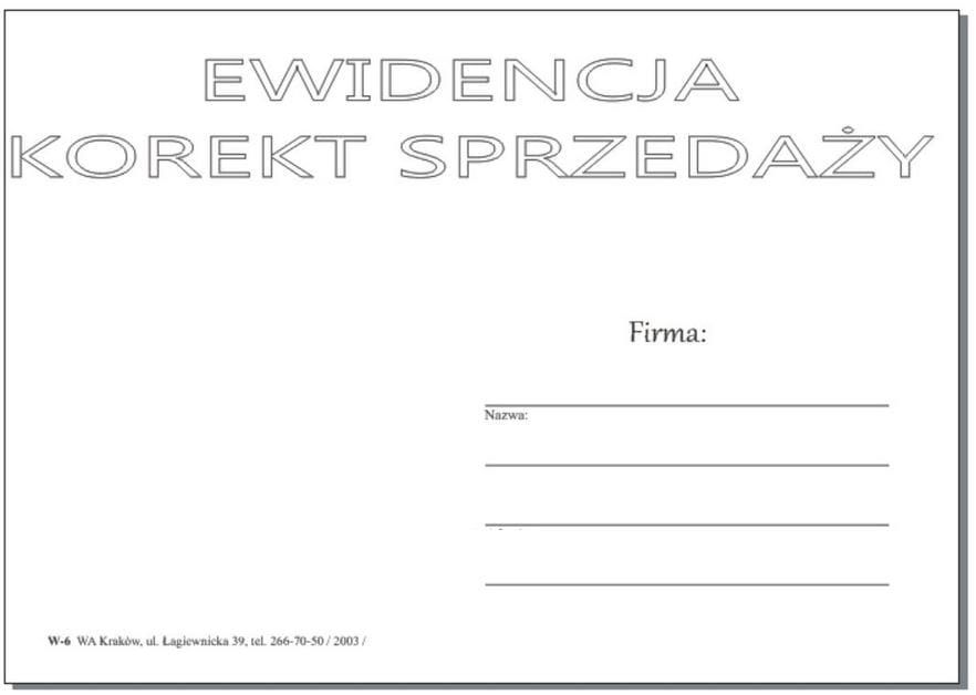 Druk W-6 VAT Ewidencja korekt sprzedaży A5 - WYPRZEDAŻ