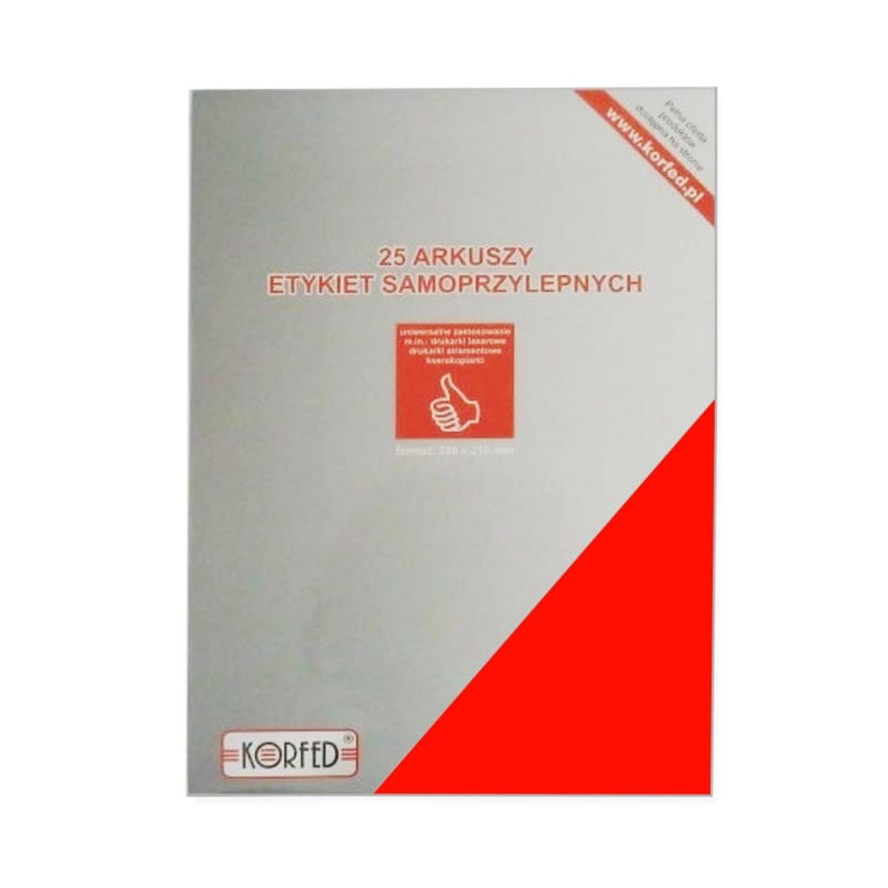 Etykiety samoprzylepne Korfed w formacie 210 x 288 mm - czerwone / pomarańczowe fluo LUB niebieskie jasne