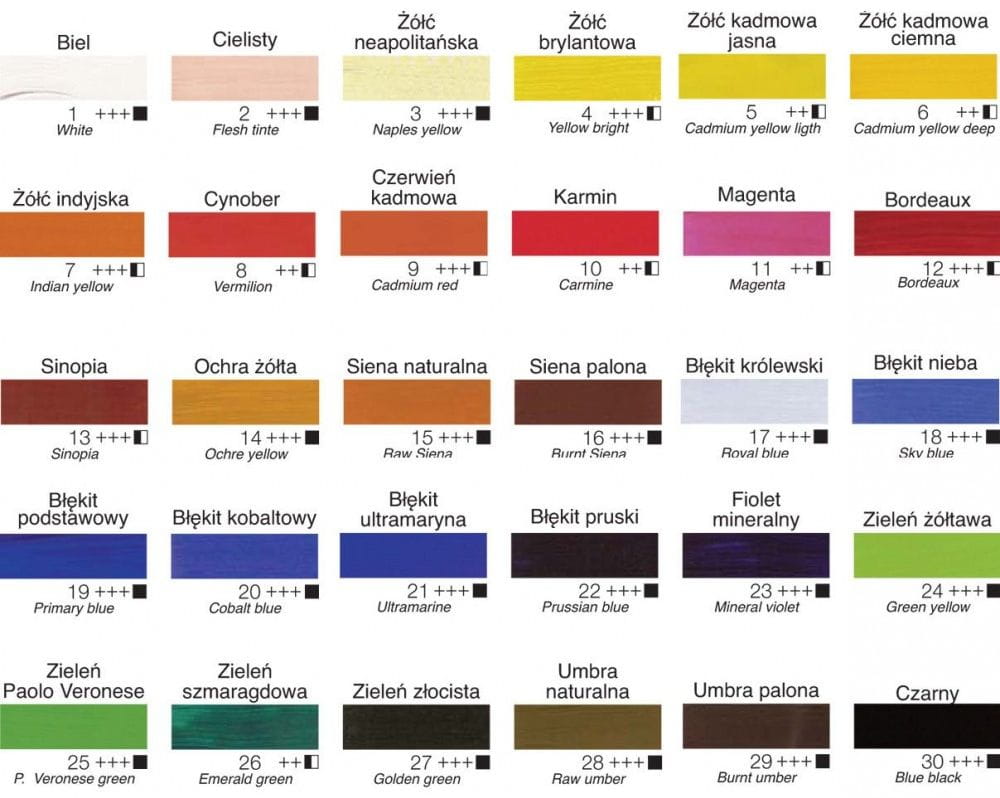 Farba akrylowa Colours produkowana jest przy zastosowaniu 100% dyspersji polimeru akrylowego. Ta specjalna formuła pozwala stworzyć prosty w użyciu produkt w dobrej cenie. Dzięki zastosowaniu specjalnej żywicy i pigmentów, farby te tworzą zwartą, matową powłokę, mają intensywną kolorystykę i dobrą odporność na wpływ światła.