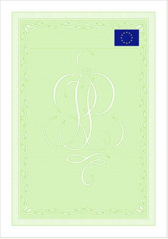 Gilosz w kolorze zielonym z flagą UE do nadruku zaświadczeń, potwierdzeń ukończenia kursów, itp.