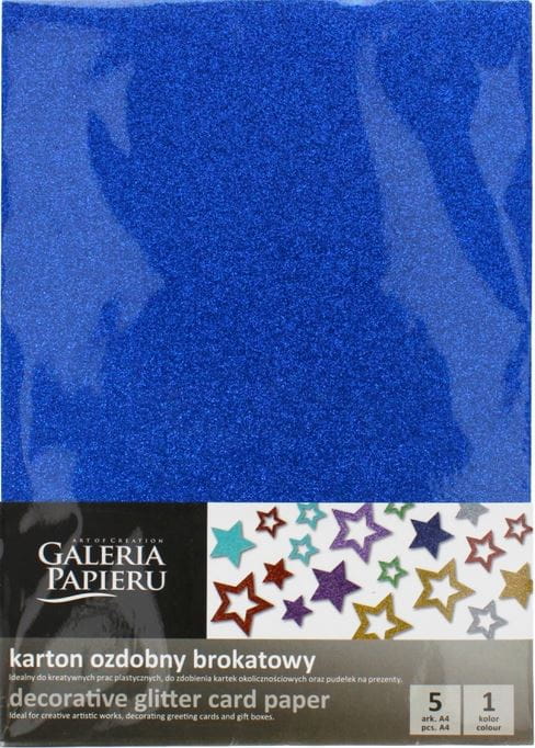 Karton ozdobny brokatowy A4 210g 5 sztuk - niebieski