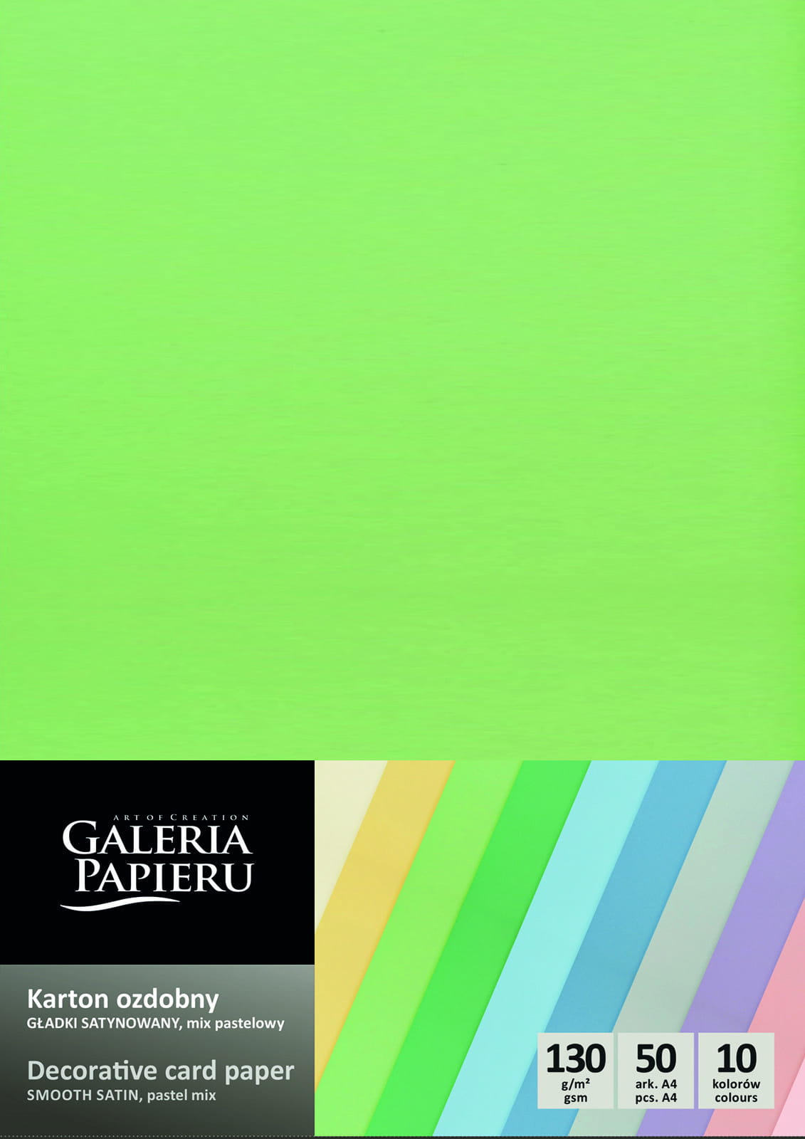 Karton ozdobny gładki satynowany pastelowy A4 130g 50 arkuszy - 10 kolorów