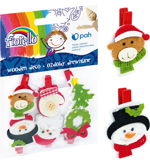 Klamerki dekoracyjne drewniane 4 cm - bożonarodzeniowe - 6 sztuk
