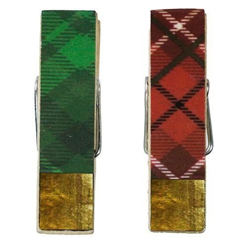 Klamerki dekoracyjne drewniane 4 cm czerwona i zielona kratka - 12 sztuk