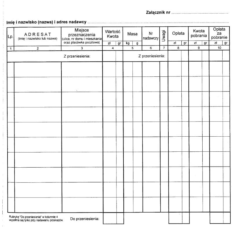 Kn-10/s Pocztowa książka nadawcza