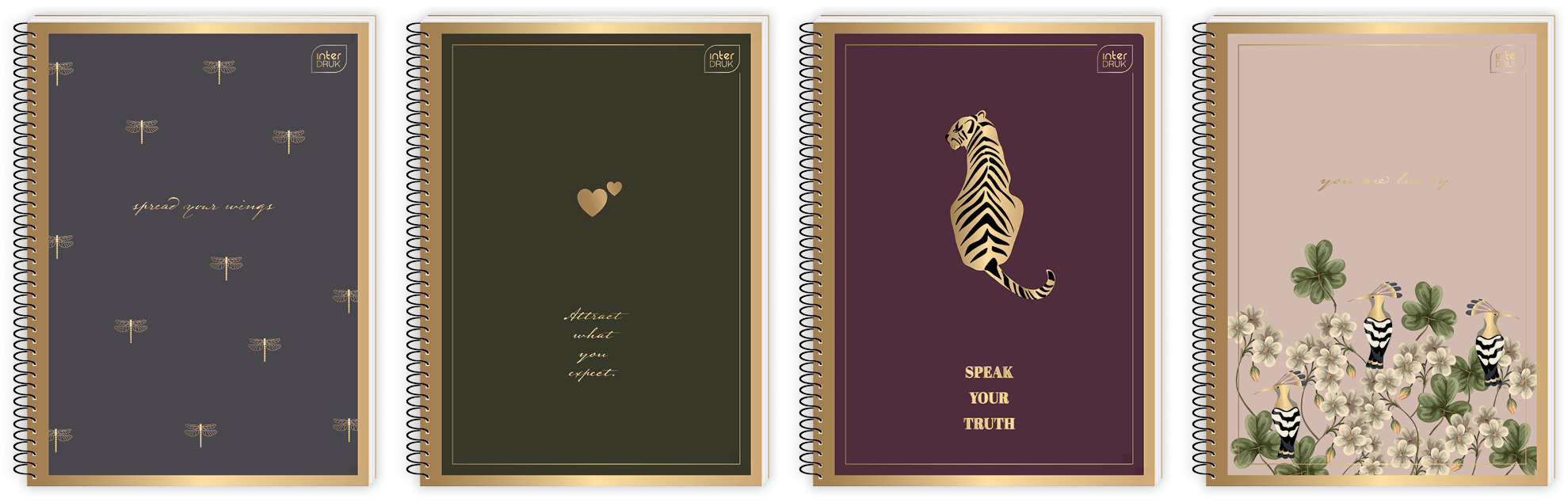 Kołozeszyt / Notes A6 Interdruk Satin Gold 80-kartkowy w kratkę - różne wzory okładek