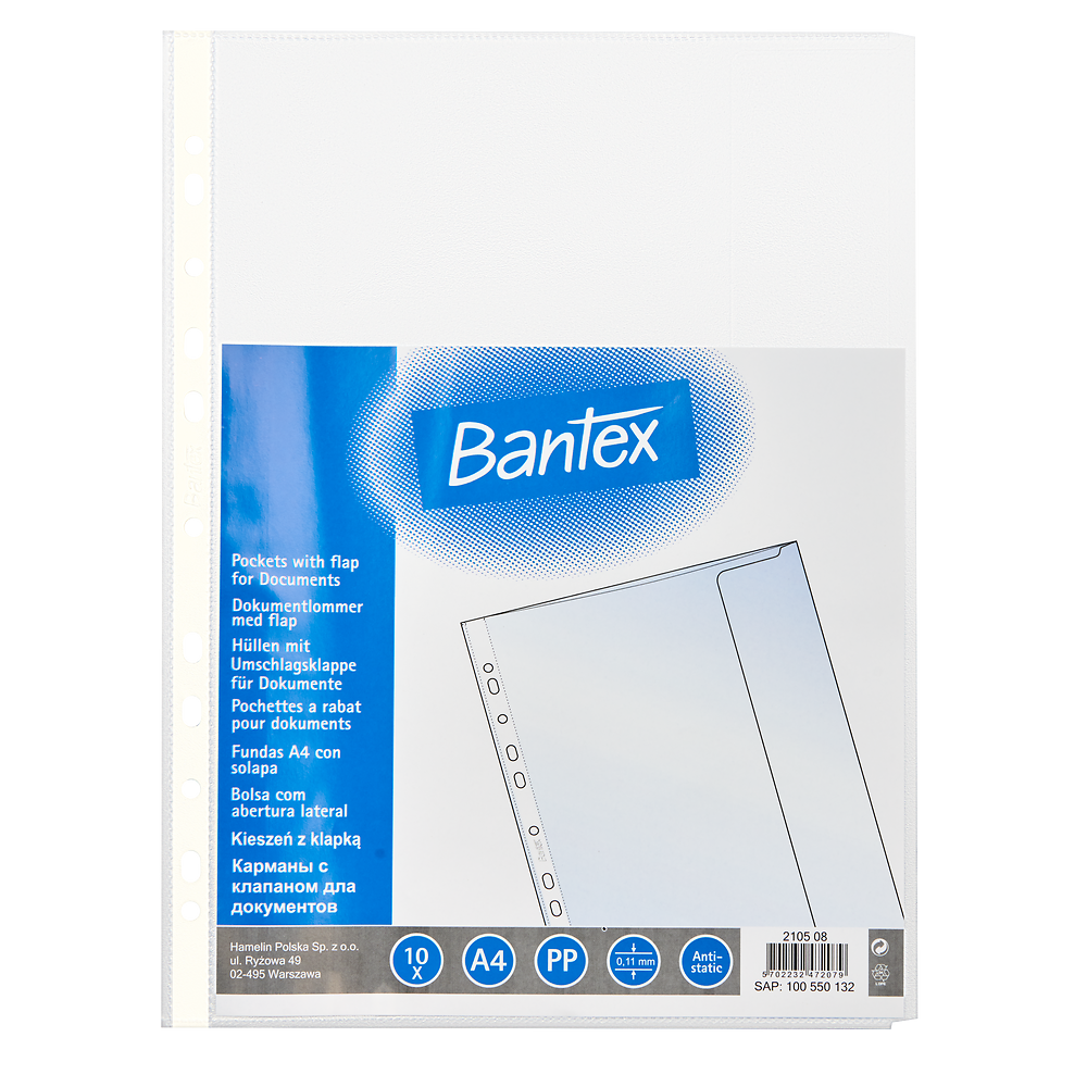 Koszulka groszkowa na dokumenty Bantex 120mic. A4 z klapką - 10 sztuk