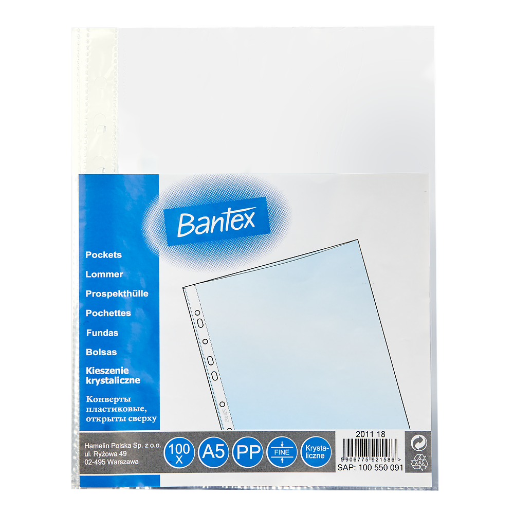 Koszulka krystaliczna na dokumenty Bantex 45mic. A5 - 100 sztuk