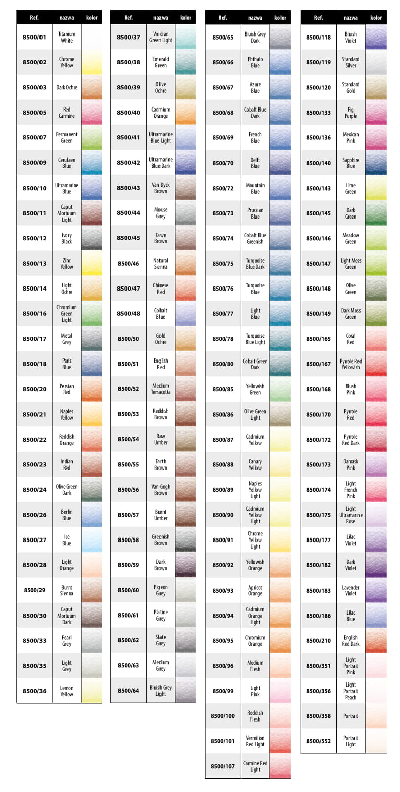 Odznaczają się bardzo szeroką paletą trwałych kolorów i jednolitą strukturą w masie pasteli. Są bardzo delikatne, dzięki czemu świetnie się rozcierają. Pastele bardzo dobrze przylegają do podłoża.