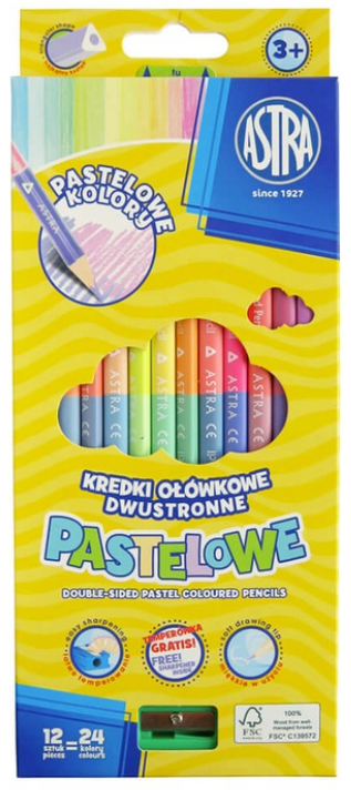 Kredki ołówkowe dwustronne ASTRA - 12+12 kolorów pastelowych (12 sztuk/24 kolory)
