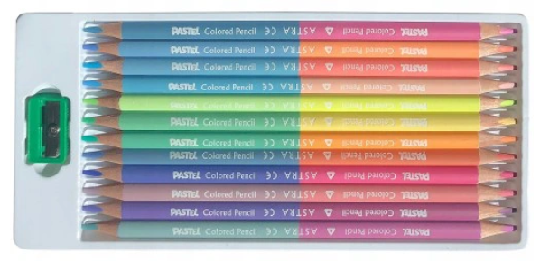 Kredki ołówkowe ASTRA w oprawie drewnianej 24 pastelowe kolory + temperówka gratis!