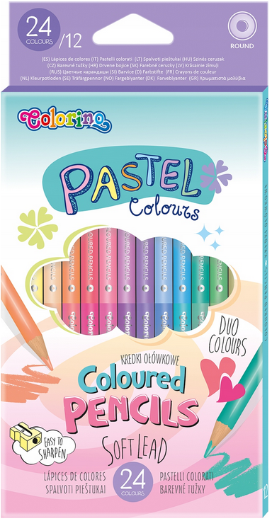 Kredki ołówkowe dwustronne COLORINO Kids - 12+12 kolorów pastelowych (24 kolory/12 sztuk)