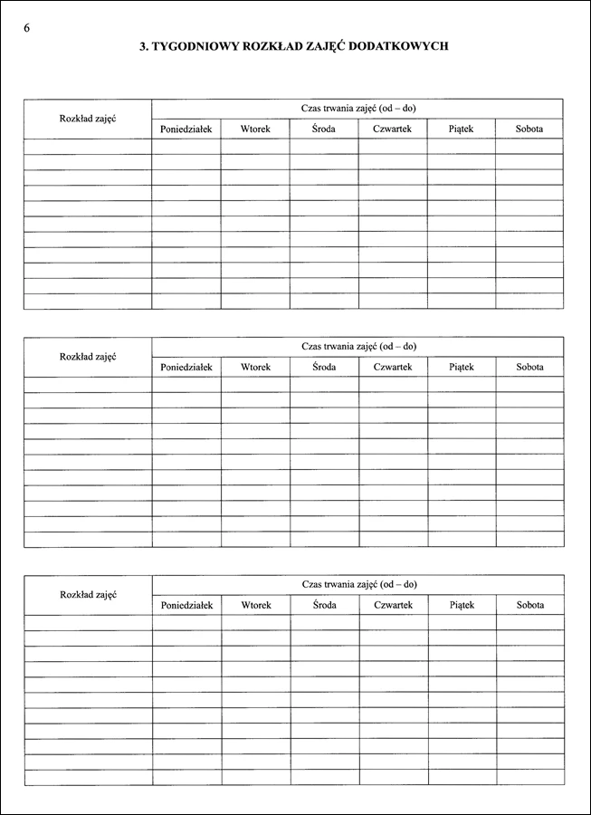 - Dzienny zapis pracy wychowawczo-dydaktycznej.