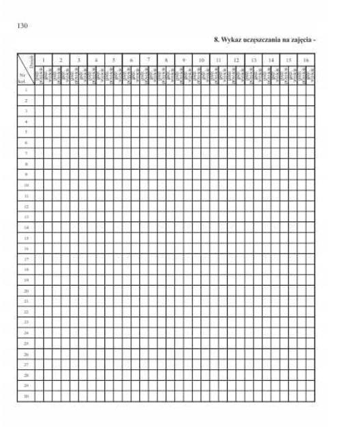 - Wykaz uczęszczania na zajęciach