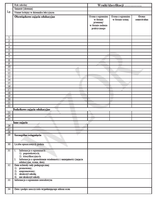 W ofercie dostępny również Arkusz ocen do wypełniania pismem ręcznym MEiN-I/41/2 (format A4, 6 stron w cenie 1,10 zł brutto za 1 szt.)