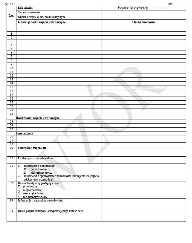 DOSTĘPNE WYŁĄCZNIE DLA PLACÓWEK OŚWIATOWYCH, Z WYSYŁKĄ NA ADRES ZAREJESTROWANEJ PLACÓWKI. PRZY ODBIORZE OSOBISTYM WYMAGANE JEST IMIENNE UPOWAŻNIENIE DO ODBIORU DRUKÓW ŚCISŁEGO ZARACHOWANIA, PODPISANE PRZEZ DYREKTORA PLACÓWKI.