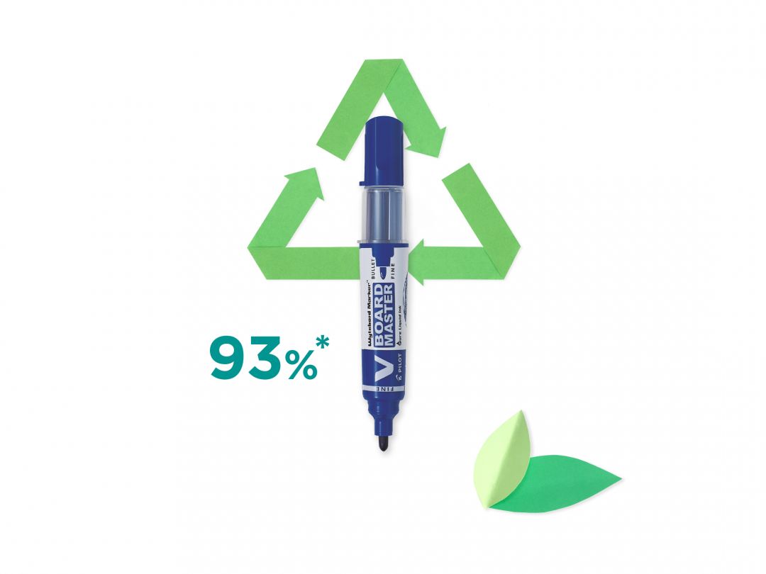 V-BOARD MASTER należy do serii produktów Begreen. Produkując V-Board Master Marker z tworzywa pochodzącego z recyklingu, Pilot zmniejsza ślad węglowy w porównaniu z takim samym długopisem nie wyprodukowanym z plastiku pochodzącego z recyklingu.