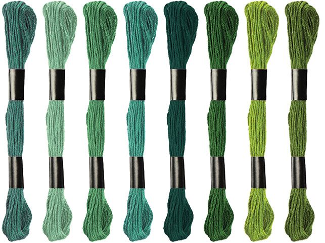 Zestaw 8 kolorowych włóczek (muliny) w zielonych barwach