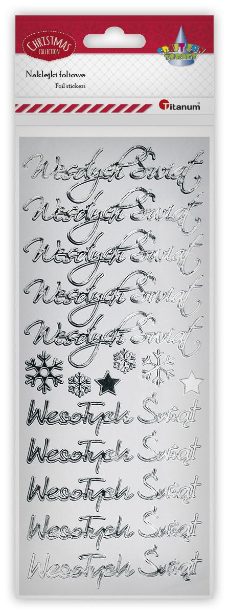 Naklejki foliowe dekoracyjne Titanum Craft-Fun Series 16 sztuk - Wesołych Świąt - srebrne