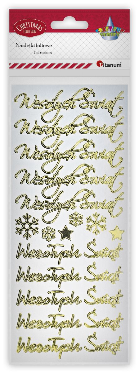 Naklejki foliowe dekoracyjne Titanum Craft-Fun Series 16 sztuk - Wesołych Świąt - złote