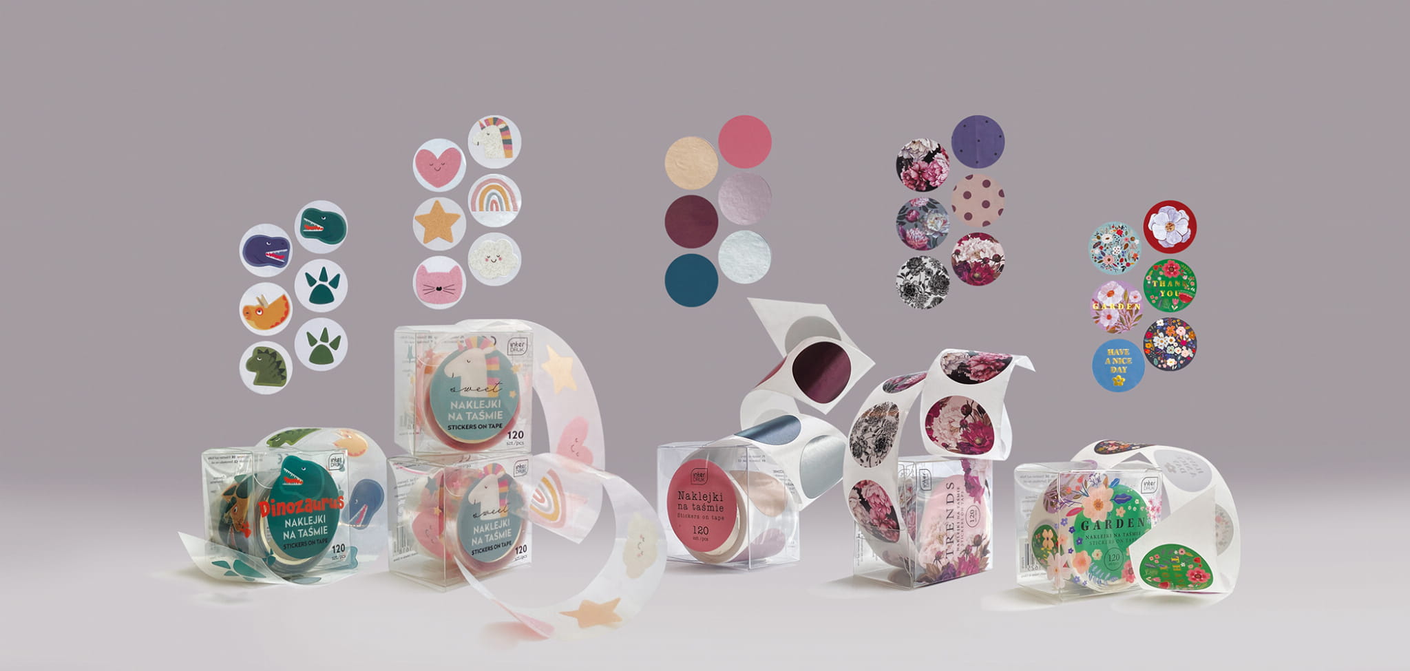 Wysokiej jakości naklejki na taśmie firmy Interdruk. Idealnie nadają się do zaklejenia pudełek jako zabezpieczenie przed otwarciem. Lecz nie tylko! Pozwolą ozdobić zeszyty, zaproszenia czy prezenty.