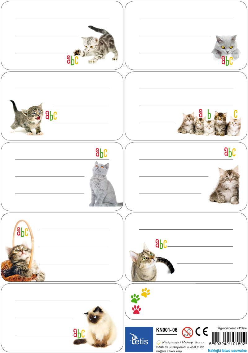 Naklejki na zeszyty / książki / przetwory Tetis Koty - 9 sztuk