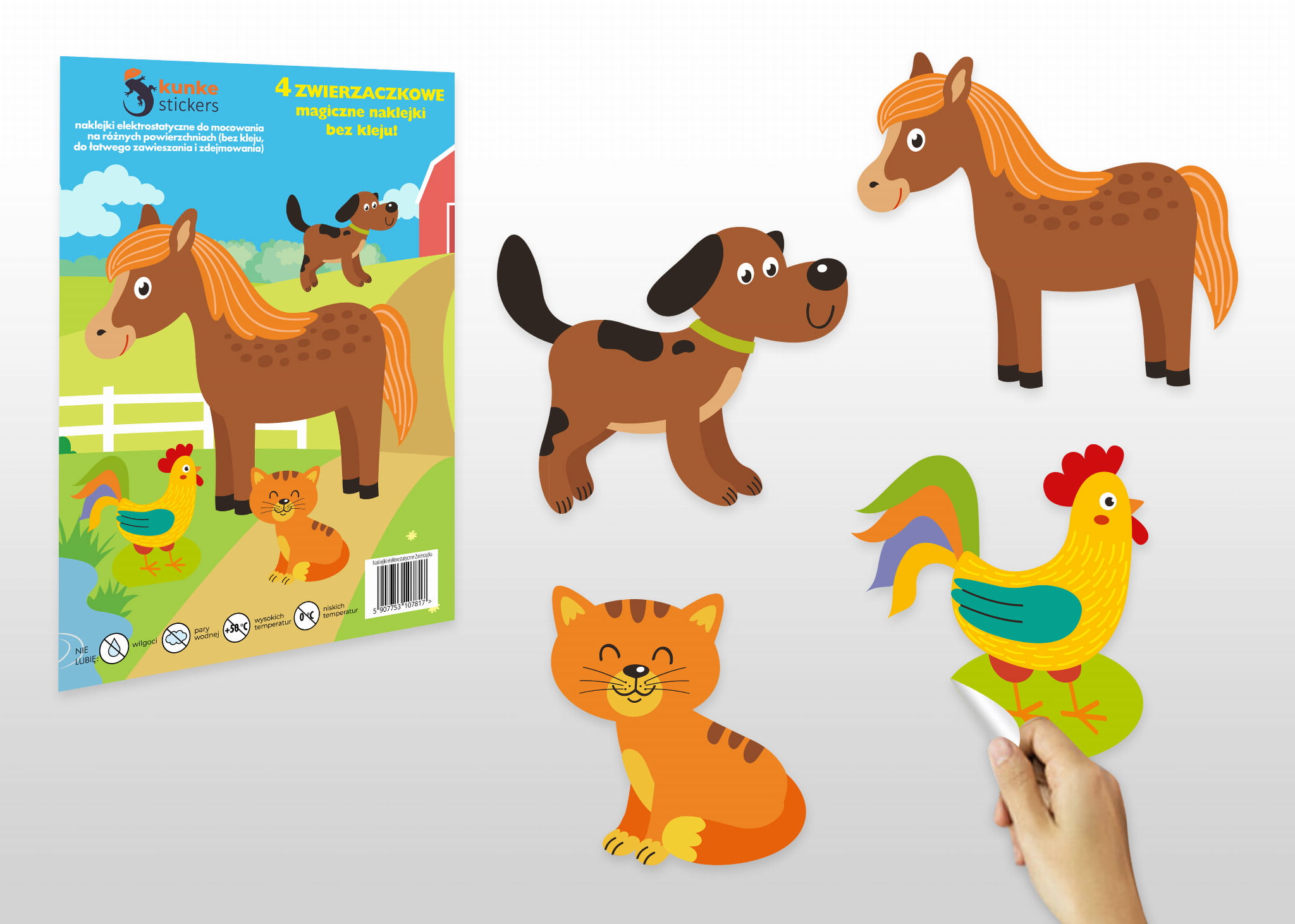W skład zestawu wchodzą: 4 naklejki ze zwierzętami.