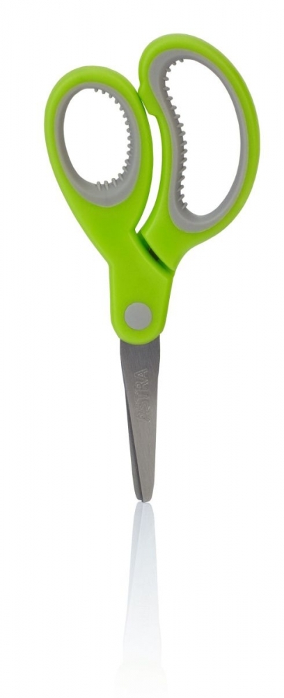 Nożyczki szkolne Astra z ergonomicznym uchwytem i podziałką. Wykonane ze stali nierdzewnej, posiadają ergonomiczny uchwyt oraz bezpieczne zaokrąglone końce i podziałkę.
