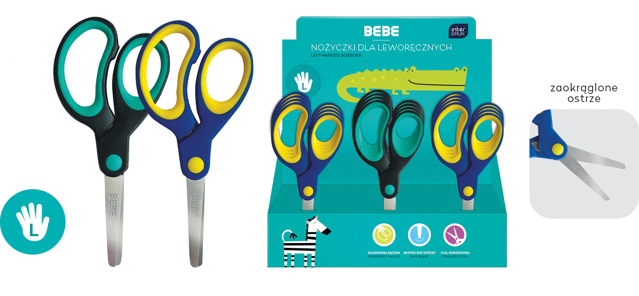 Nożyczki szkolne dla leworęcznych Interdruk BEBE Kids 13 cm - różne kolory