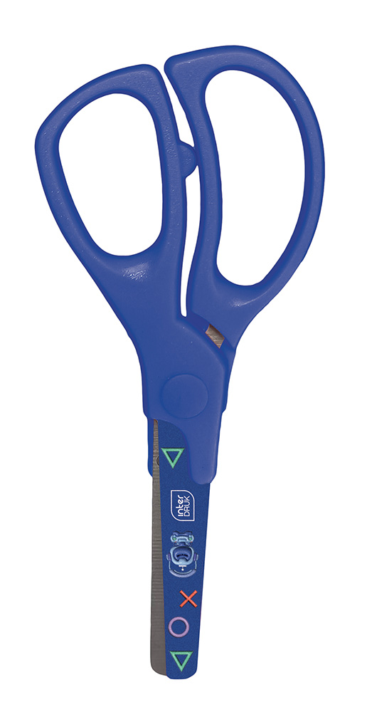 Nożyczki ze stali nierdzewnej, z wygodnym ergonomicznym uchwytem i zaokrąglonymi końcami. Przystosowane dla osób praworęcznych.