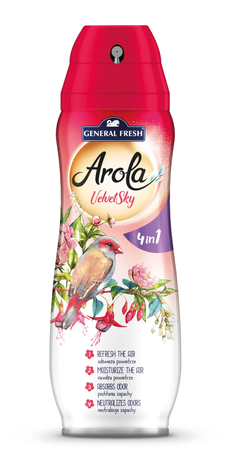 Odświeżacz powietrza w aerozolu (sprayu) Arola Velvet Sky 4w1 300ml - kwiatowo-owocowy