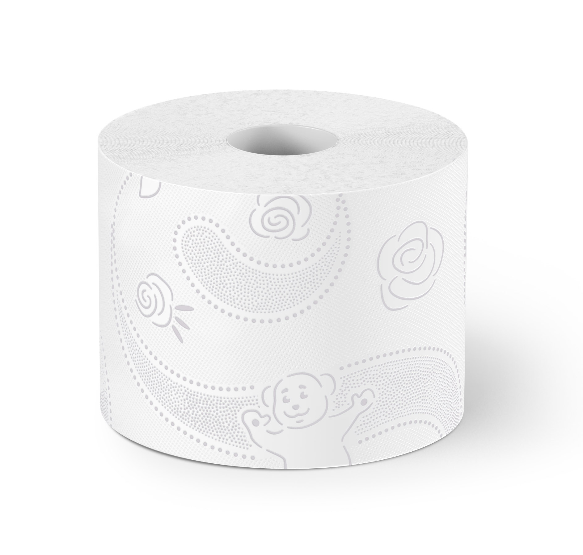 Wyprodukowany w 100% z czystej celulozy. Bardzo wytrzymały, biały 3-warstwowy papier z tłoczeniem w szarym kolorze. Technologia użyta do jego produkcji umożliwia uzyskanie poduszeczek między warstwami nadających mu miękkości i niezwykłej puszystości.