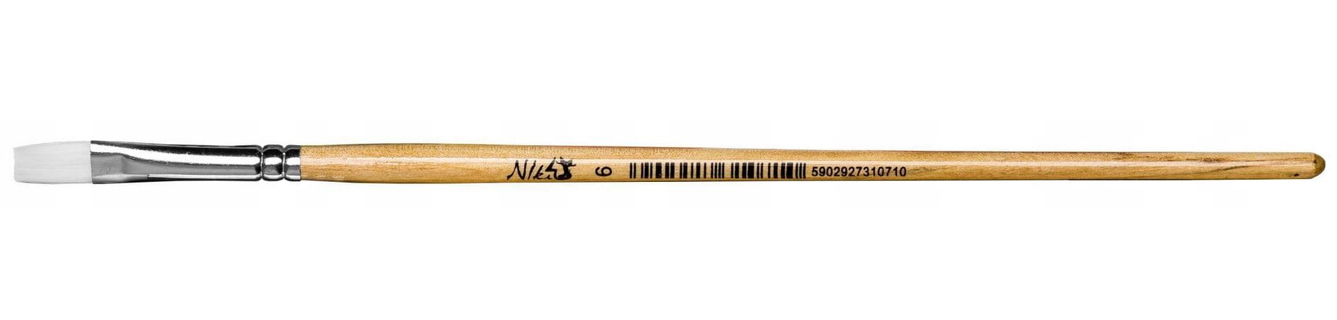 Pędzel płaski przeznaczony jest do malowania: pojedynczych pociągnięć, cienkich i grubych linii. Wykonany jest z nylonu. Trzonek pędzla wykonany jest z lakierowanego drewna, włosie umieszczone jest bezszwowo w metalowej skuwce.