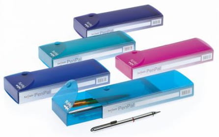 Piórnik marki Snopake, model Pen Pal, z wysuwaną szufladką zapinaną na zatrzask. Z boku znajduje się podłużna wsuwka na podpis. Idealny do przechowywania długopisów oraz drobnych rzeczy.