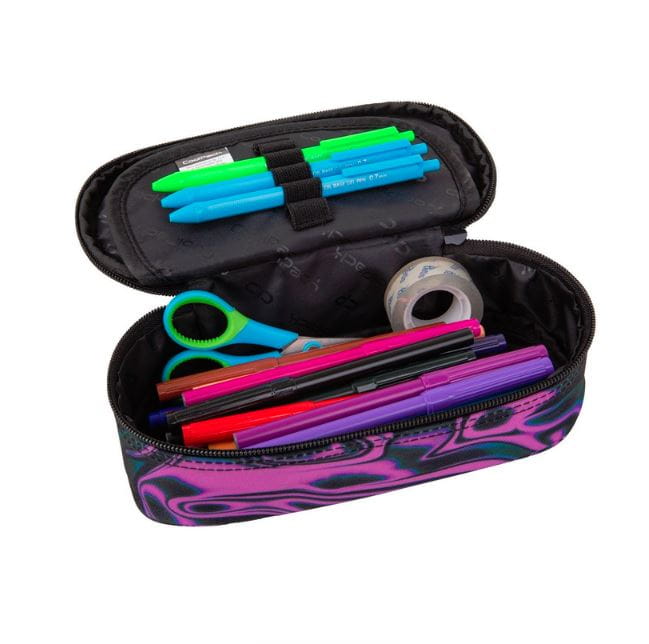 Pojemny, wykonany z trwałego poliestru, świetnie zorganizuje wszystkie przybory piśmiennicze. Piórnik posiada jedną komorę zamykaną na suwak. Wewnątrz znajduje się klapka z gumkami na długopisy, ołówki i kredki.