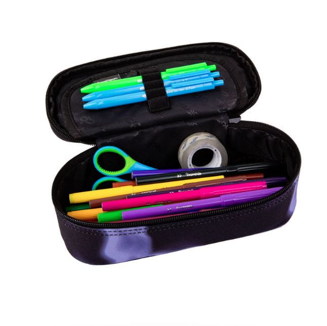Pojemny, wykonany z trwałego poliestru, świetnie zorganizuje wszystkie przybory piśmiennicze. Piórnik posiada jedną komorę zamykaną na suwak. Wewnątrz znajduje się klapka z gumkami na długopisy, ołówki i kredki.