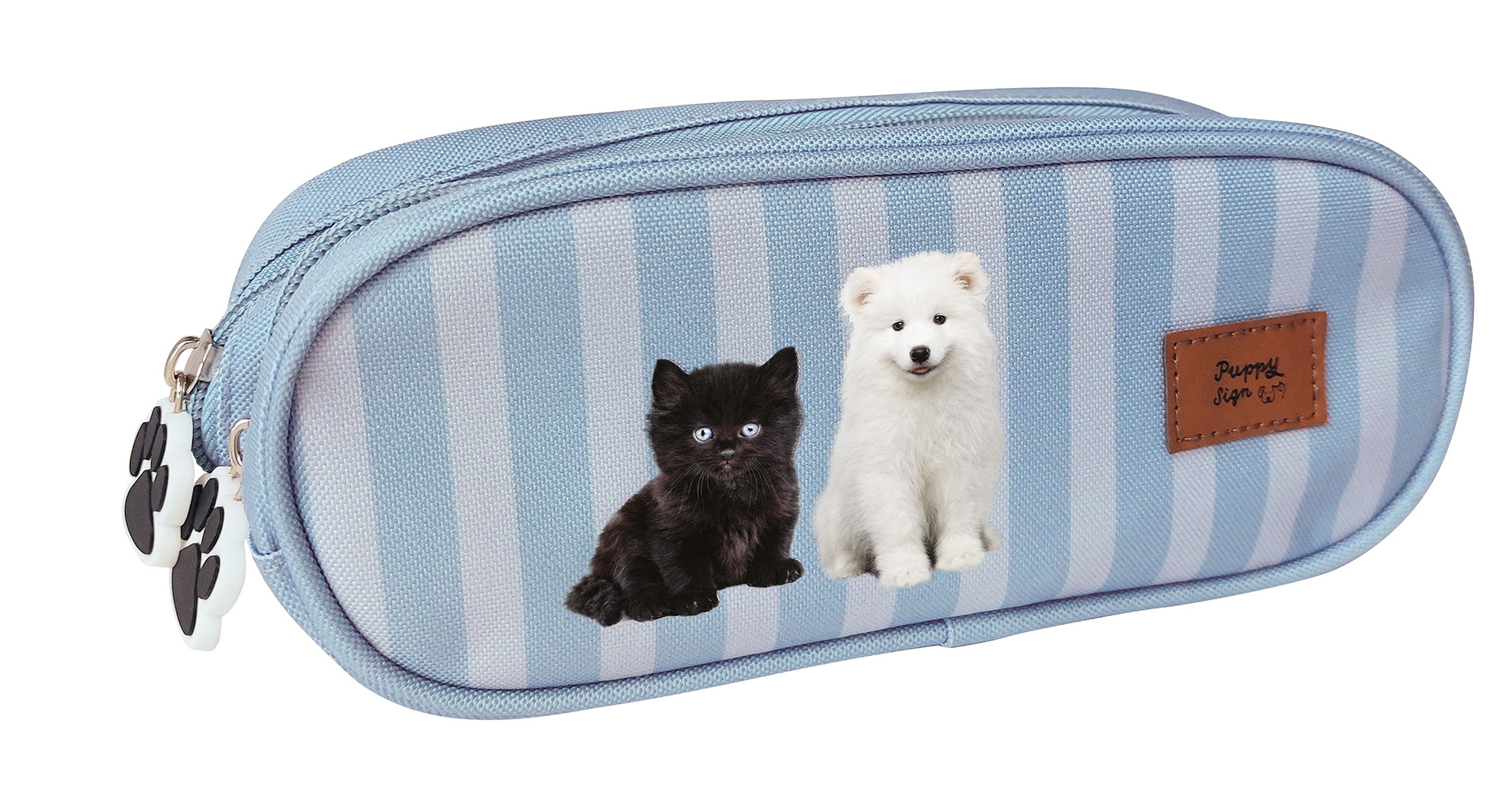 Piórnik 2-komorowy Puppy Sign to idealne rozwiązanie dla miłośników zwierzaków! Posiada dwie pojemne komory, które pomieszczą wszystkie szkolne przybory, pomagając utrzymać porządek. Solidne zamki i trwały materiał sprawiają, że piórnik posłuży na długo, a urocze nadruki zwierzaków sprawią radość każdego dnia. Dostępny w 2 wyjątkowych wzorach.