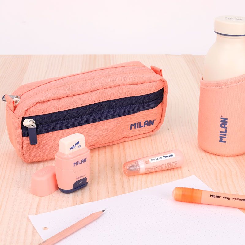 Piórnik prostokątny z 2 suwakami z kolekcji 1918 różowy, gładki. SERIA 1918 jest inspirowana oryginalnymi kolorami i wzornictwem gumek MILAN.